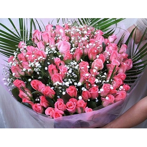 豪華!厳選、バラ100本花束かすみ草付き ピンク