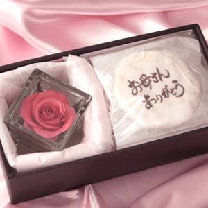 ●一輪の薔薇の花と「お母さんありがとう」のメッセージ煎餅